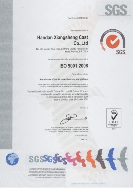 2001年1月通過ISO9001國際質(zhì)量體系認(rèn)證,并于2011年榮獲EN124產(chǎn)品認(rèn)證。